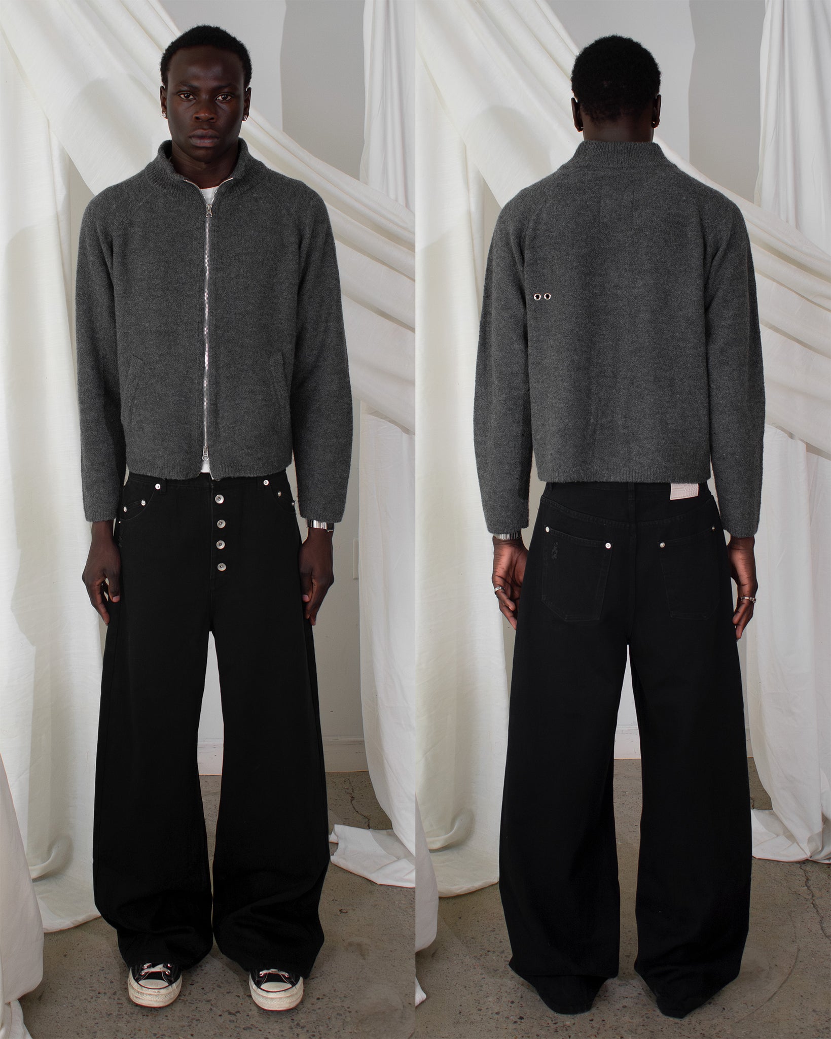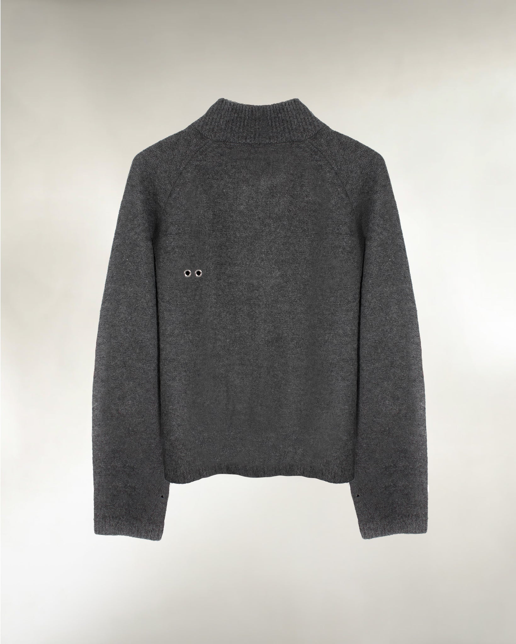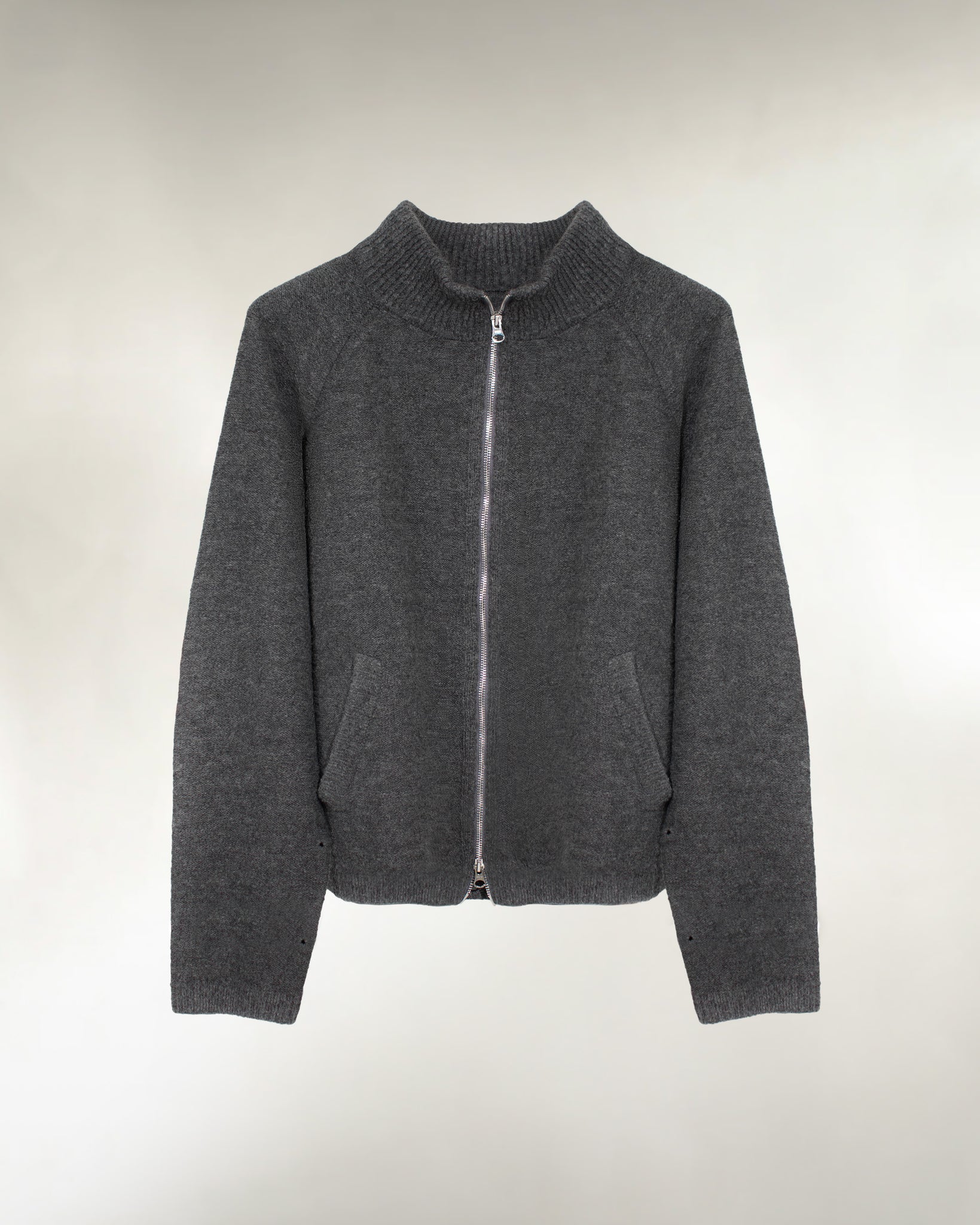 True to size fit.Mid-weight wool blend knit.YKK double zipper closure.Decorative eyelet detailing.